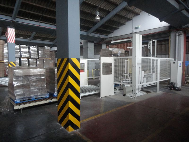 伺服馬達昇降手臂, 快速轉確 安全防撞電眼自動感應棧板高度 高強度鐵管結構 PLC及觸控面板 刀片式切膜 無熱絲沾黏及煙問題 送膜馬達 出膜平順 可用大直徑膠膜